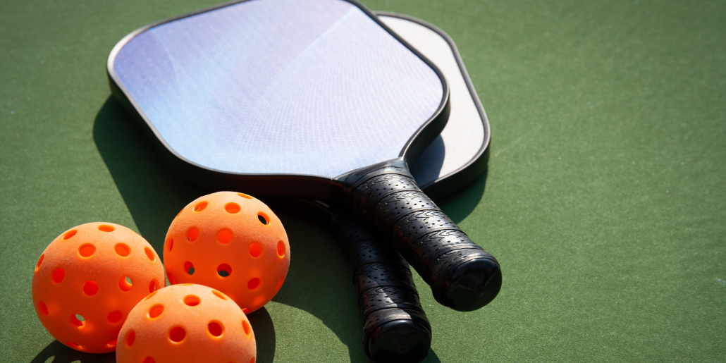 Pickleball is a raquet sport similar to tennis, ping pong and badminton. Typically played in 2 vs. 2 fashion on a badminton-sized court, players use rectangular paddles to hit a wiffle ball back and forth.